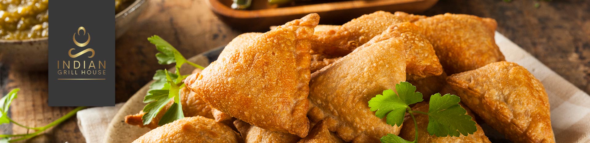 zwei Teigtaschen gefüllt mit zartem Chickenfleisch, Kartoffeln, und Cashewnüsse